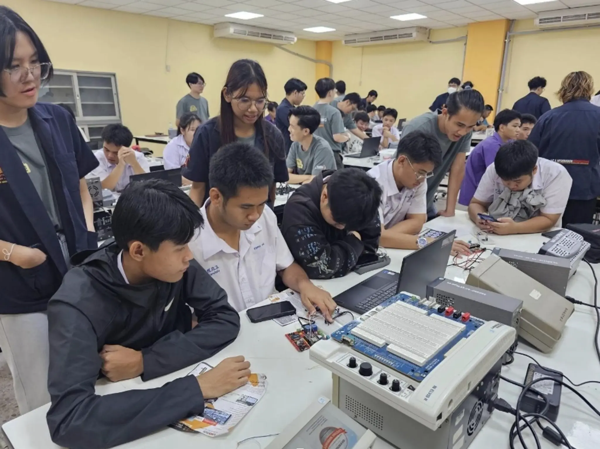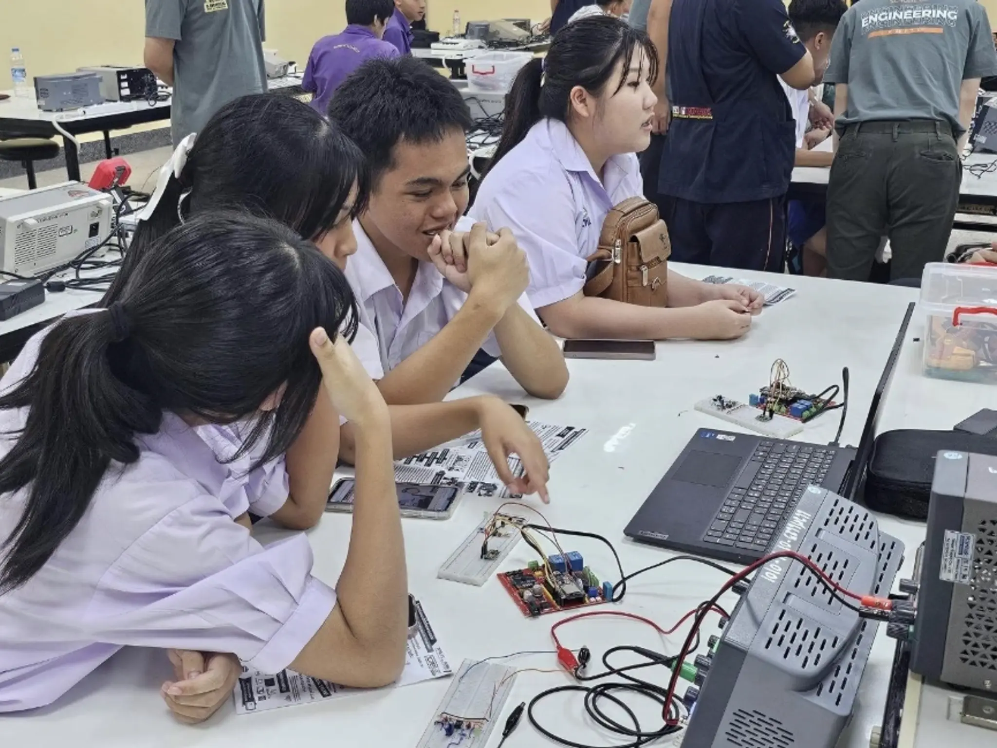 ผู้เข้าร่วมกิจกรรมจะได้เรียนรู้ภาพรวมของระบบไอโอทีหรืออินเตอร์เน็ตในทุกสรรพสิ่ง รวมถึงการเขียนโปรแกรมเพื่อควบคุมบอร์ดสมองกลฝังตัวและเชื่อมต่อผ่านอินเตอร์เน็ตไปยังสมาร์ทโฟน น้อง ๆ ที่เข้าร่วมกิจกรรม จะสามารถใช้แอพพลิเคชันทำระบบไอโอทีเพื่อควบคุมอุปกรณ์และเซ็นเซอร์ได้ในเบื้องต้น รวมถึงเข้าใจถึงหลักการนำไปประยุกต์ใช้ในอุตสาหกรรม พร้อมพบกับพี่ ๆ ในหลักสูตรวิศวกรรมระบบไอโอทีและสารสนเทศ และสองปริญญา ฟิสิกส์อุตสาหกรรม ถึงการเรียนและปฏิบัติการของหลักสูตร